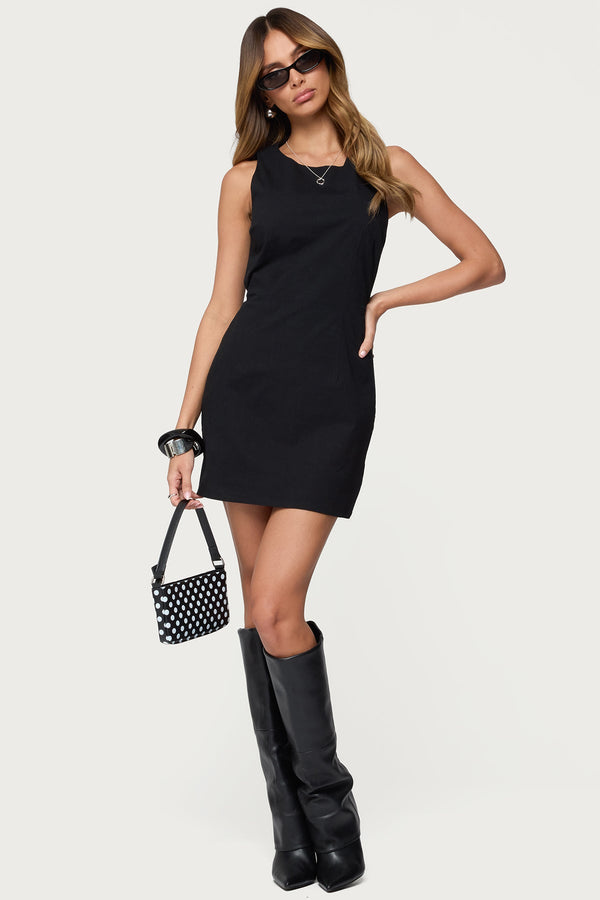 - Back tie & zip closure