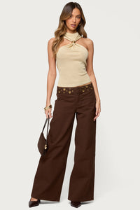 Nalia Gathered Ring Glitter Knit Top